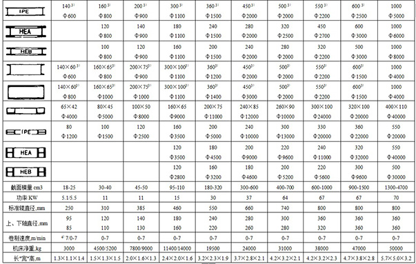 機器的床身為鋼板焊接結構,并經退火處理消除內應力。整機有足夠的強度和剛度,能夠滿足機器能力范圍內的型材的彎曲,根據用戶需要更換模具,可以卷彎角鋼、扁鋼、方鋼、槽鋼、工字鋼、圓鋼、鋼管等型材。該機結構先進,工作可靠,體積小,功能齊全,是國內外先進的型材成形設備。廣泛用于鍋爐、造船、水電、金屬結構等行業。